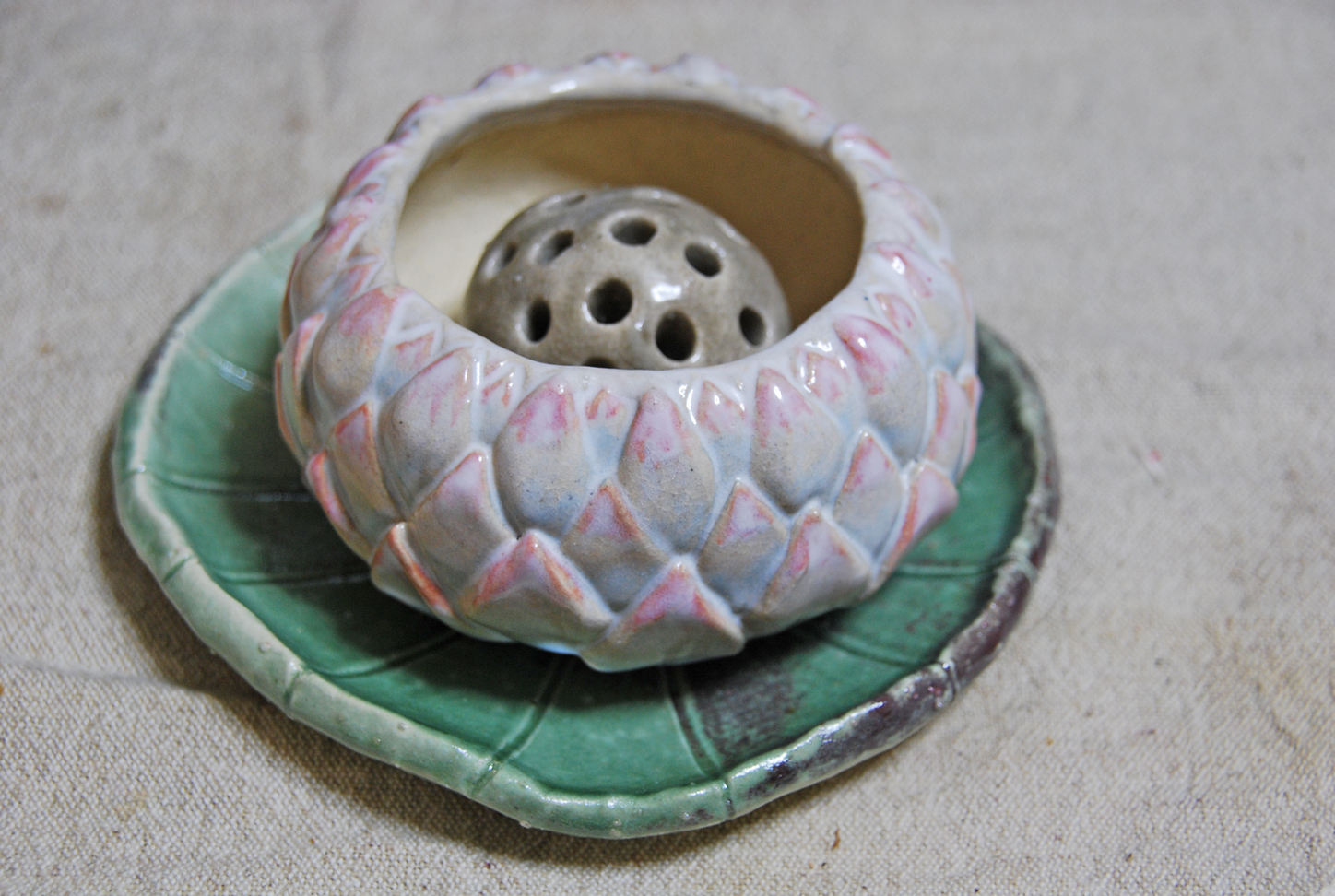 セットで受け皿と剣山の代わりとなるような花差しも作りました。
